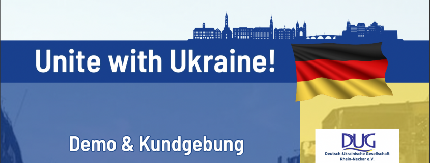 Gerne laden wir Sie dazu ein, am 24.02.2024, ab 15:00, am Jahrestag des russischen Angriffskrieges, für Solidarität mit der Ukraine zu demonstrieren! Start ist auf der Wiese am Bismarckplatz, die Kundgebung wird am Marktplatz enden. Die Deutsch-Ukrainische Gesellschaft organisiert die Demonstration, mit Unterstützung der FDP Heidelberg. Die Eröffnungsrede hält Oberbürgermeister Prof. Dr. Eckart Würzner.